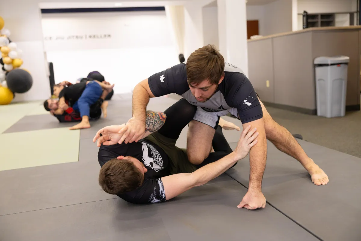 All of our classes are open to all skill levels, beginner through advanced. We focus on the fundamentals of jiujitsu, which are simply the most effective parts of the art. We also do a lot of specific drilling and training, which teaches you how to apply techniques and movements during a “live” roll.